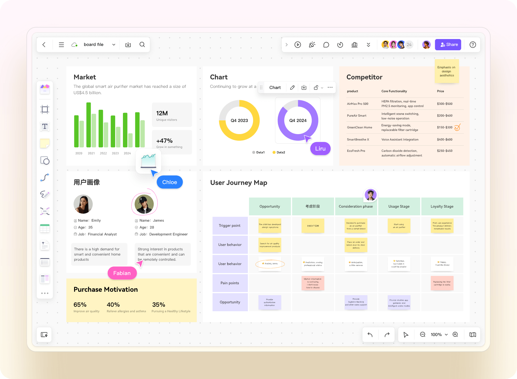 Visualize data, charts, and reports on an infinite canvas
