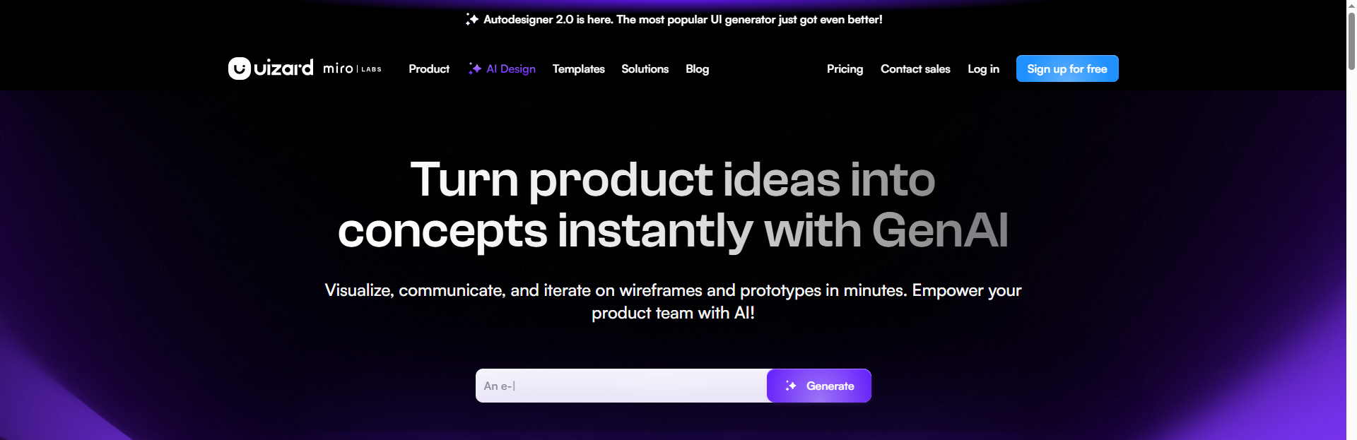 Uizard is another powerful AI prototype generator that is gaining more and more momentum these days among startups and solo-founders. It's designed to interpret text prompts or even photos of hand-drawn sketches into editable wireframes.