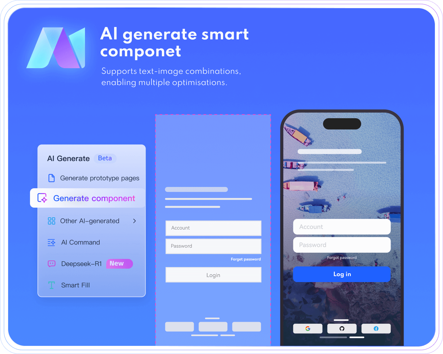 · Zero learning curve—built-in components and templates, drag-and-drop ready. · Immersive previews with real-device scanning, eliminating guesswork during reviews. · AI-powered one-line generation for multi-page prototypes, boosting efficiency exponentially.