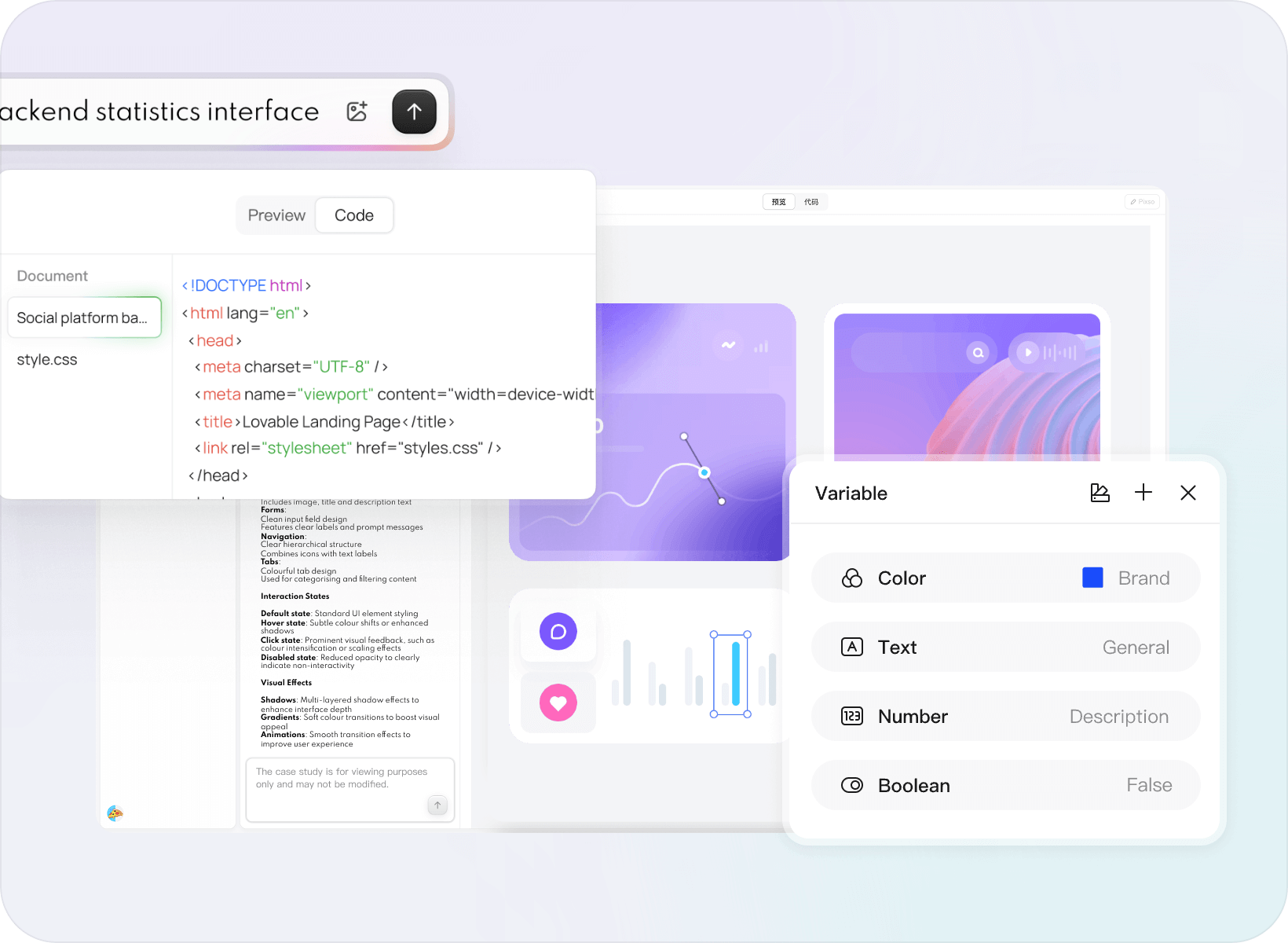 · Mockitt design is fully aligned with Figma core functionality, supporting variable management, component variants, real-time collaboration, new AI design generation, D2C to code (adapted to Hongmeng ArkTS), Figma file import completeness of 99.9%, but also built-in component libraries of large factories and multi-color vector mesh technology